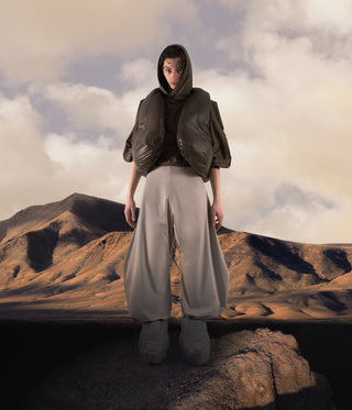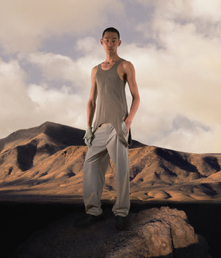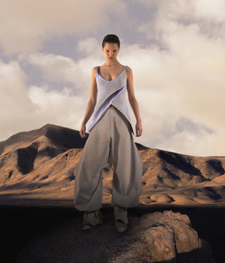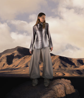 IZZY DU /LIFELINE is primarily focused on the wearer. This line is centered on quality fabrics, flattering for the body, integral colour schemes, and comfort. Characterised by minimal finishings and trims, pure prints and apex pattern making, every element is considered consciously. Rooted in fundamentals, this collection is about reducing excess and rebounding to the basics of garment-making. Technically constructed garments that everyone, no matter what style, age or gender, can link seamlessly into their wardrobe.