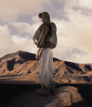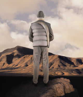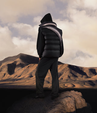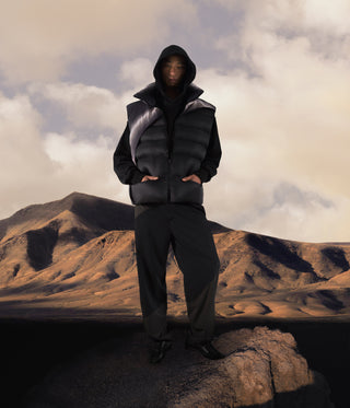 All puffers are filled with duck down and feather and encased in water-proof fabric made with 100% recycled polyamide.